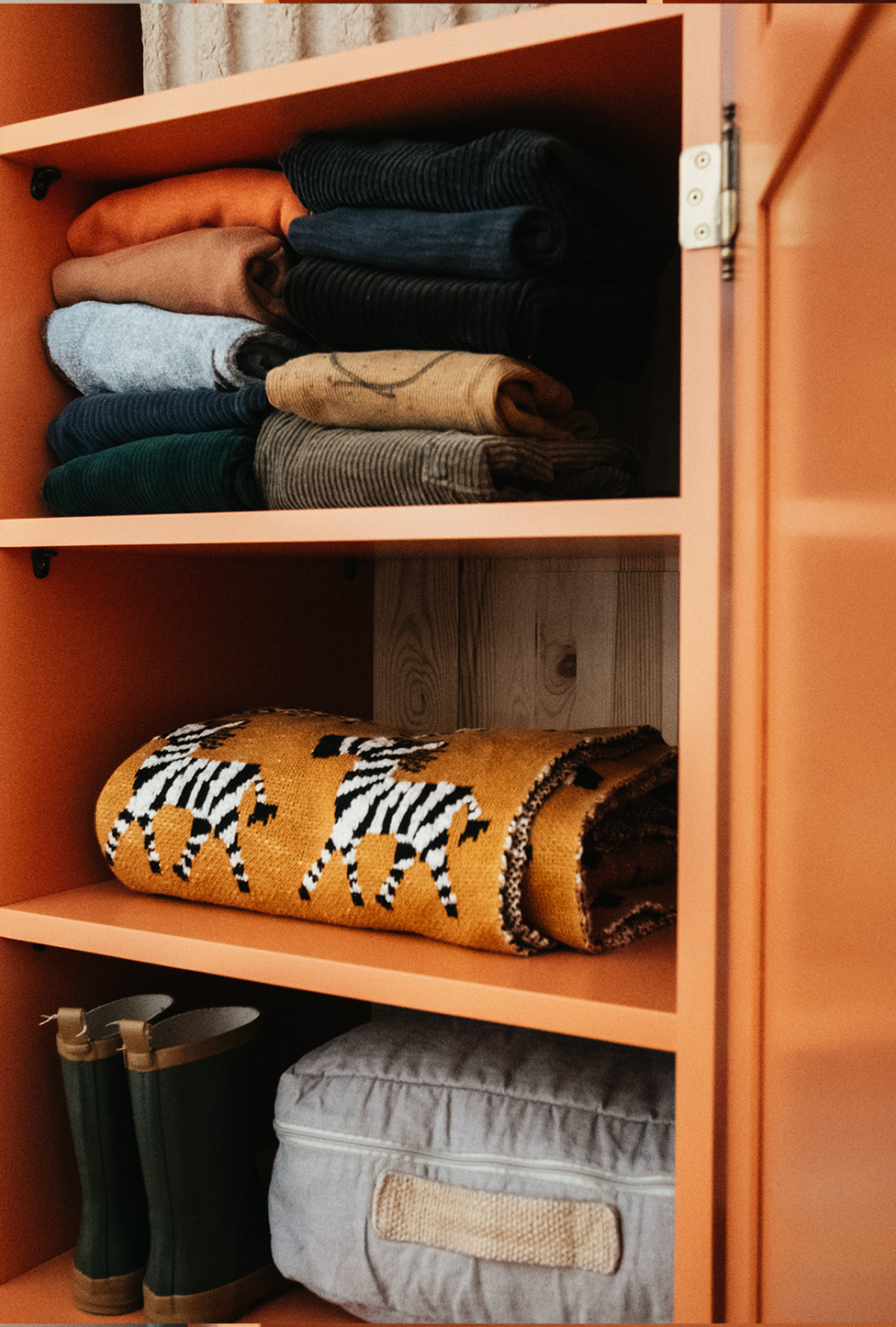 Lockable door weaved with rattan mat, both enrich this traditionally crafted piece with an exotic touch. It conjures visions of a faraway land where travel requires a flying carpet and the sun needs a quarter of an hour to rest. It can hold anything from a sari to colourful beads to a stuffed toy snake.